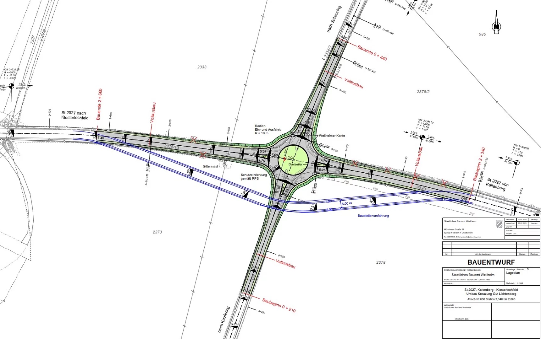 Pressemitteilung des Staatlichen Bauamtes Weilheim: Umbau der Kreuzung bei Gut Lichtenberg (Staatsstraße 2027)