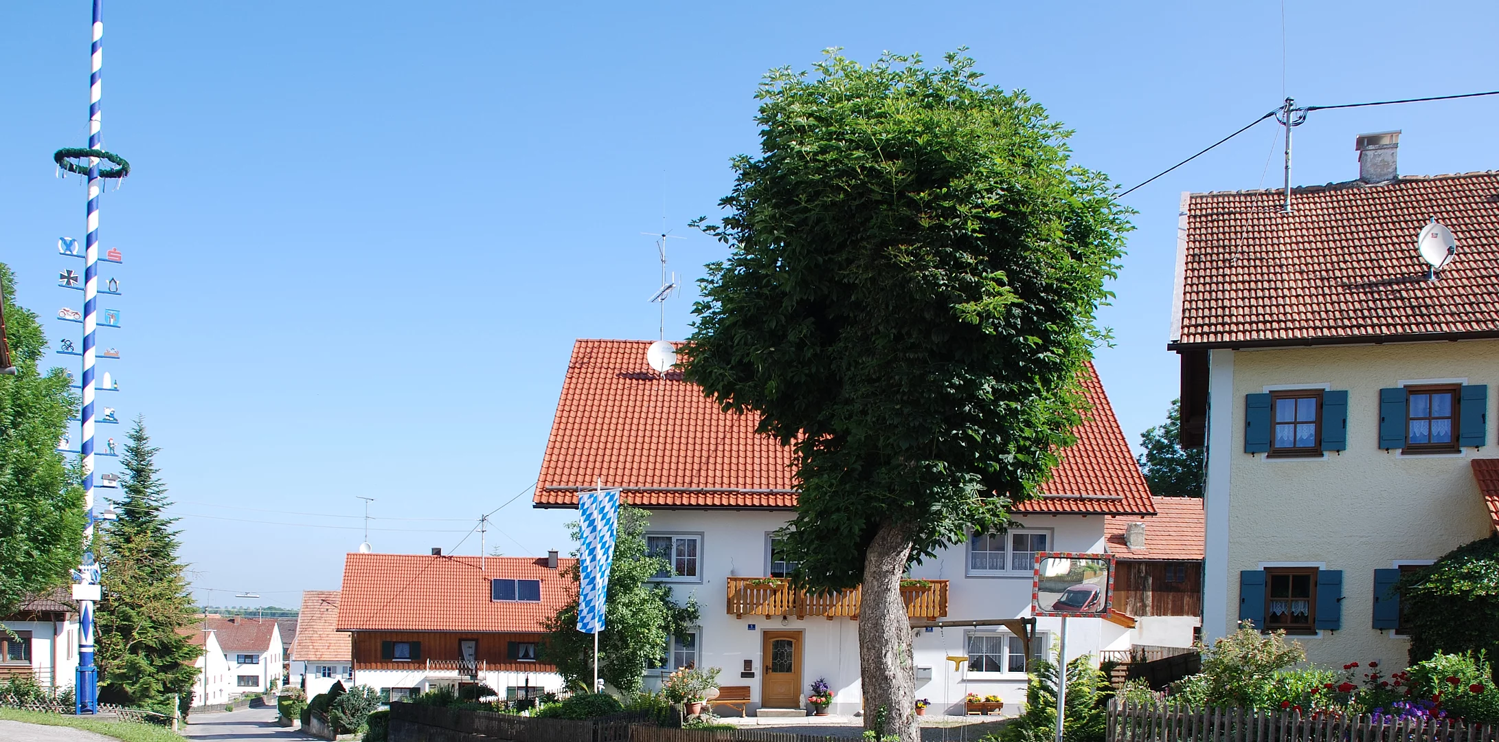 Die Pfarrkirche St. Peter und Paul liegt im nördlichen Teil des Dorfes. Der Oberteil des Turmes stürzte bei einem Unwetter 1725 ein und erhielt daraufhin einen hohen Aufbau mit Satteldach und hübschen, geschweiften Treppengiebeln. Eine besondere Zierde der Kirche ist der elegante Wessobrunner Stuck von Franz Xaver Schmuzer um 1750.